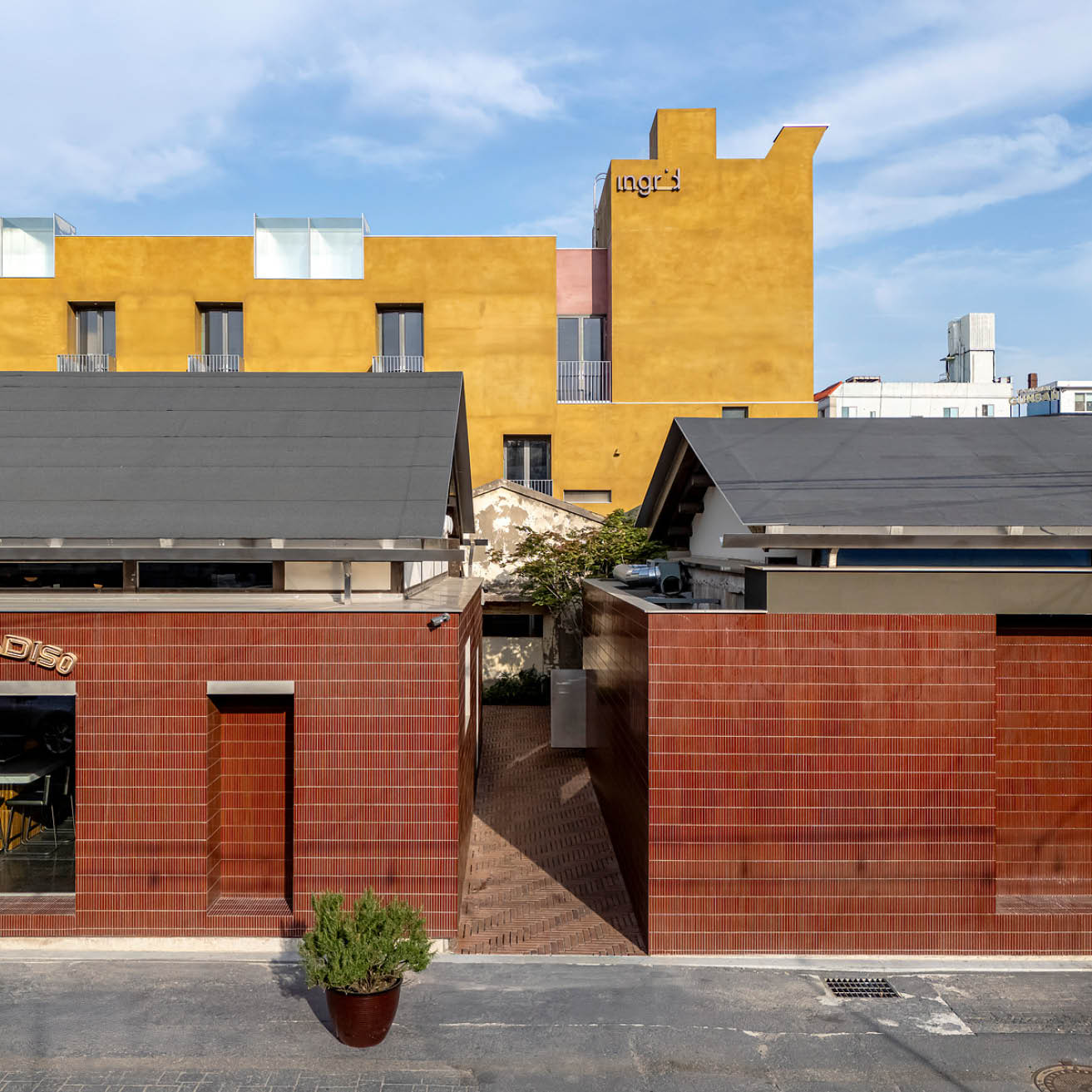 그러나 1990년대 이후 방치된 원도심의 흔적은 적산가옥과 그를 점유하던 점집들로 고스란히 남아 있었다. / 본 프로젝트는 서측 적산가옥군과 동측 호텔 부지를 포함한다. 특히 적산가옥군은 다양한 시대의 켜가 중첩되어 본래의 형체를 구별하기 어려웠고, 구조적으로도 대부분 생명을 다한 상태였다. 우리는 도시 형식과 시간의 층위를 보존하면서도 새로운 시대를 수용할 수 있는 ‘지속 가능한 복원’을 원칙으로 삼았다. / 전체를 해체하고 재조립하는 과정을 통해, 성한 목재 부재는 최대한 재사용하고 나머지는 새 부재로 교체하였다.