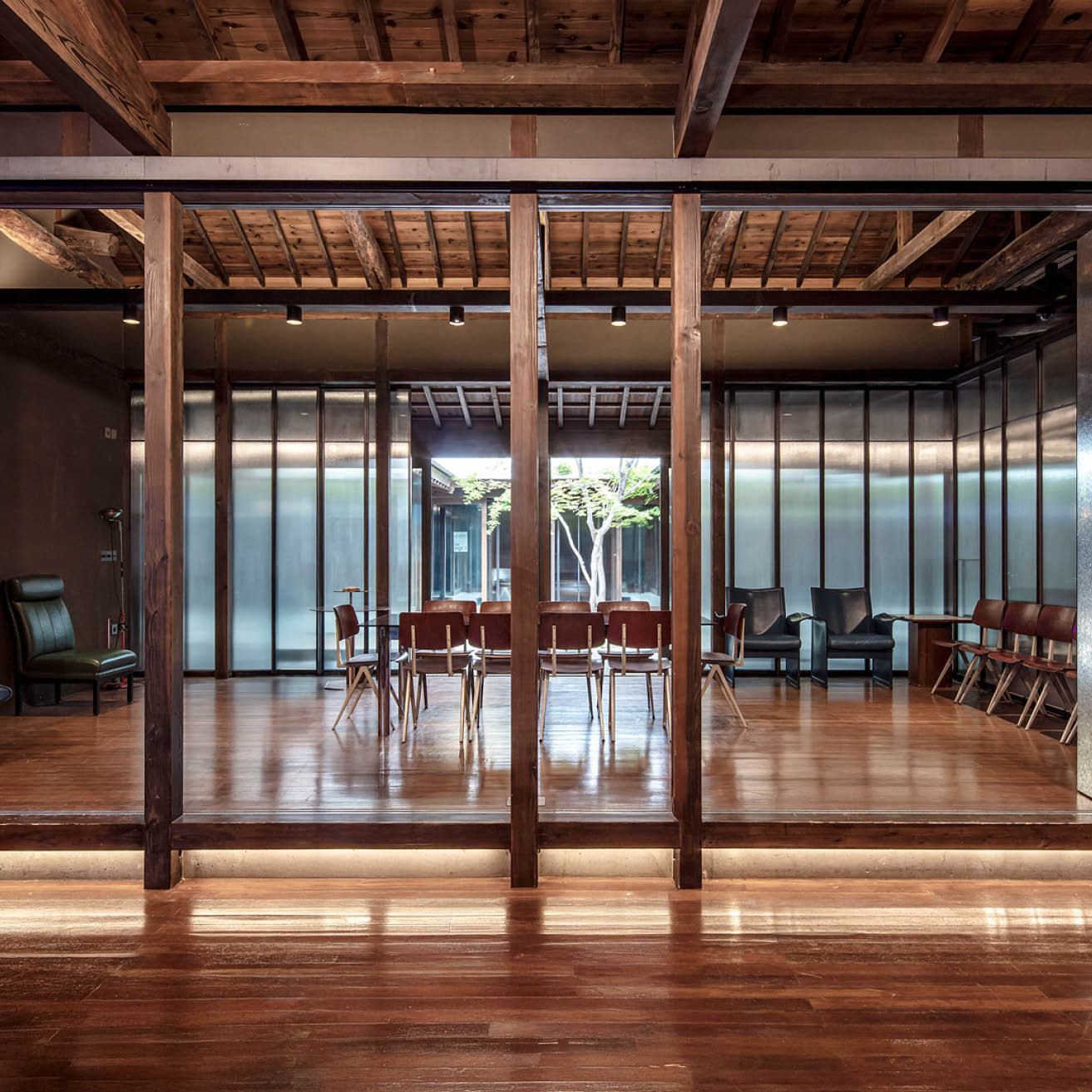 평면은 유연하게 해석하되 기본적인 목구조 틀은 존중하였고, 외장재와 디테일은 지금 이 시대의 감각으로 다시 구성하였다. 목재, 적벽돌, 타일, 미장 등 군산의 정체성을 이루는 재료는 이곳에서 새롭게 해석되어 또 하나의 시간의 켜로 자리 잡는다. / 본 프로젝트는 과거를 기억하되, 과거에 머물지 않는다. 다양한 시간의 결이 응축되어 만들어낸 이 복합체는, 다시 사람들이 돌아오는 ‘도시적 귀환’의 시작점이자 새로운 군산의 가능성이다.