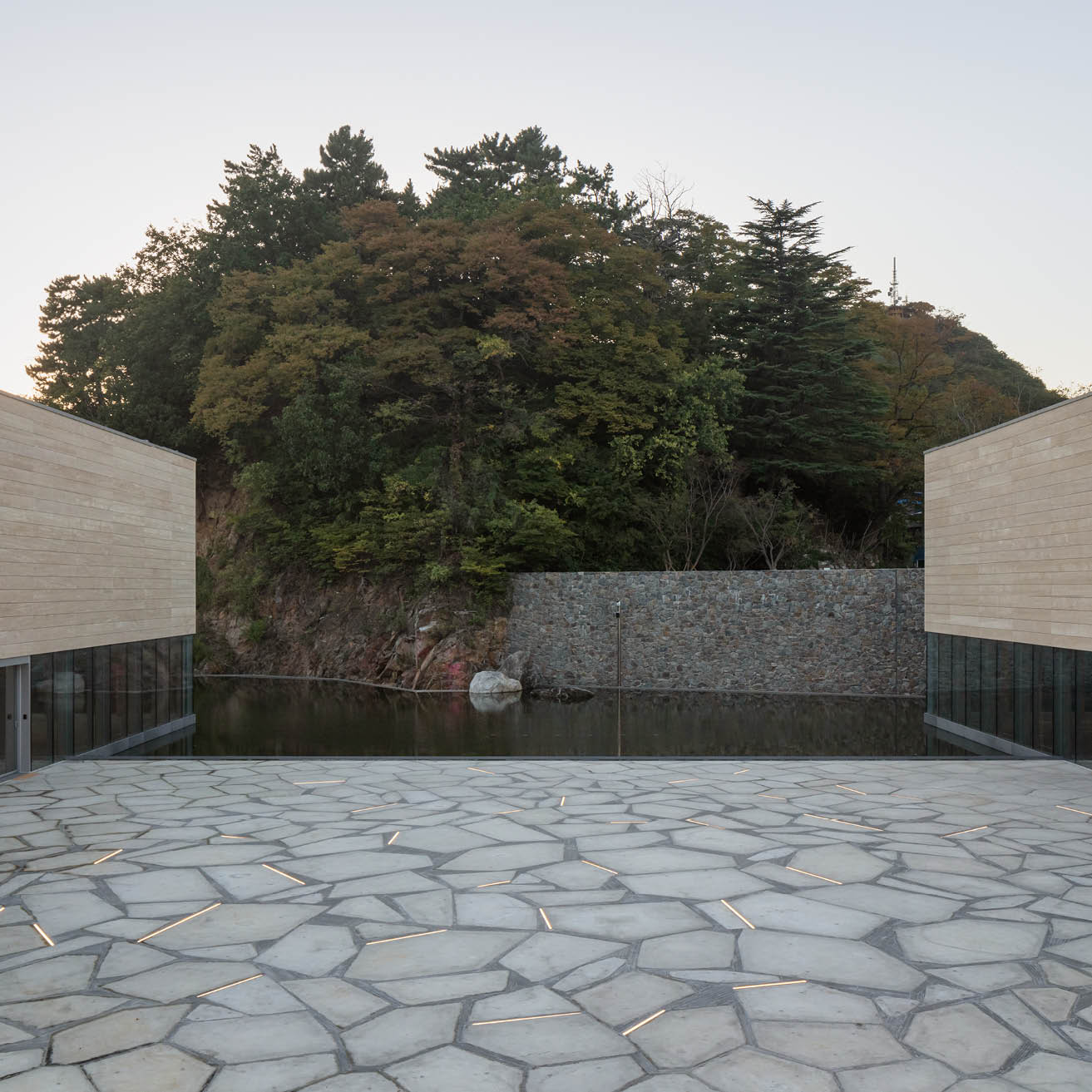 도입한 물은 육향지라는 이름을 가지고 연못의 형태로 존재하며, 육향산과 연계되어 바다 위 섬의 이미지를 부각한다. 이처럼 드러낸 대지의 역사성을 바탕으로 조성된 전시 공간은 과거의 경관을 회복하고 삼척시의 새로운 문화적 자원으로서의 역할을 하게 된다. 이사부독도 기념관은 관광안내 센터, 영토수호 기념관, 독도체험 공간, 복합휴게 공간 총 네 개 동으로 구성된다. 분절된 매스는 전시 구성과 전시의 관람 방식, 공간의 감상 방식이 유연하게 이뤄지도록 돕는다.