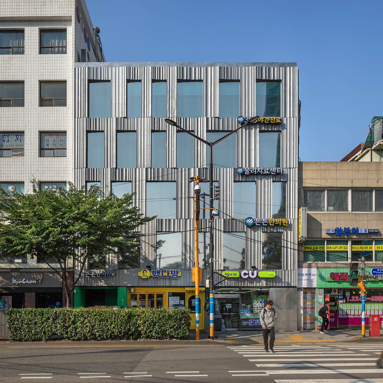 골목을 닮은 계단실, 도시와 건축을 잇는 틈 건물은 왕십리 대로변과 이면도로가 만나는 교차점에 위치하며, 이는 곧 과거 도시 조직과 신도시 흐름이 맞닿는 지점이기도 하다. 우리는 이 경계에 ‘골목길을 닮은 계단실’ 을 제안했다. 두 건물 사이에 외부 계단실을 두고, 이를 통해 도시와 건축 사이의 단절을 잇는 흐름의 장치로 삼았다. 이 계단실은 물리적 연결을 넘어 도시의 경험을 확장하는 장소가 되었다. 좁은 틈 사이로 빛이 스며들고, 움직임이 흐르며, 도시의 리듬이 건축 안으로 스며드는 통로로 작동한다. 과거의 골목길처럼 유도된 동선은 사용자의 경험을 유연하게 만들며, 각기 다른 시대의 건물이 하나의 흐름 안에서 공존하도록 만든다. 오래된 것에서 출발하는 새로운 가능성 이 프로젝트는 단순한 건물 리모델링이 아니다. 이는 과거의 잔재를 보존하면서, 그 위에 새로운 시간성을 덧입힌 작업이었다. 소위 ‘새로움’을 위한 제거가 아닌, 기존이 지닌 가치와 리듬을 현대적으로 조율하는 방식. 우리는 오래된 것이 오히려 더욱 현대적인 감각을 품을 수 있음을, 이 공간을 통해 증명하고자 했다. 건축은 과거와 현재, 그리고 미래가 중첩되는 장소다. 왕십리 W1+W2 리노베이션 프로젝트는 그러한 중첩의 구조를 탐색한 실험이었다. 이곳에 서면, 사라진 한옥의 기억이 입면에 녹아 흐르고, 도시의 새로운 흐름은 그 틈을 따라 조용히 스며든다.